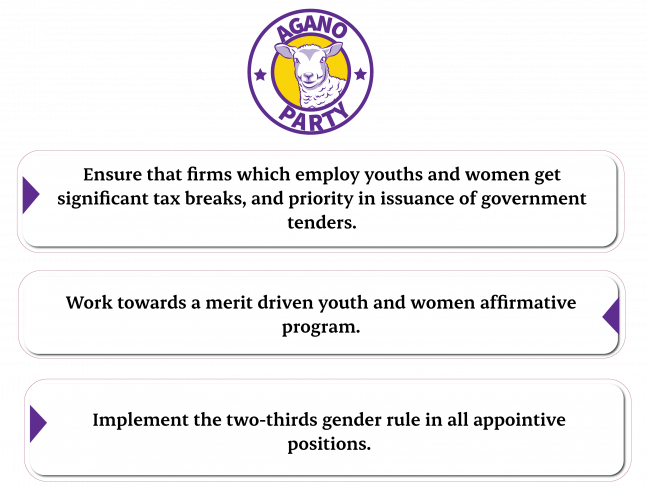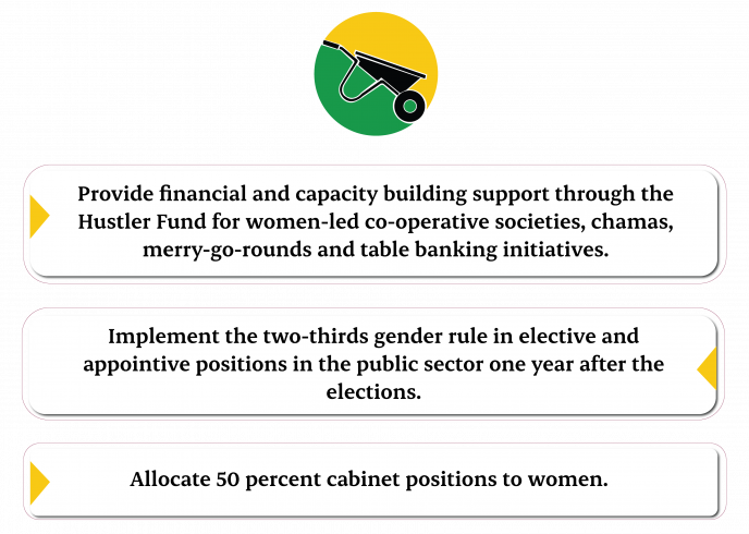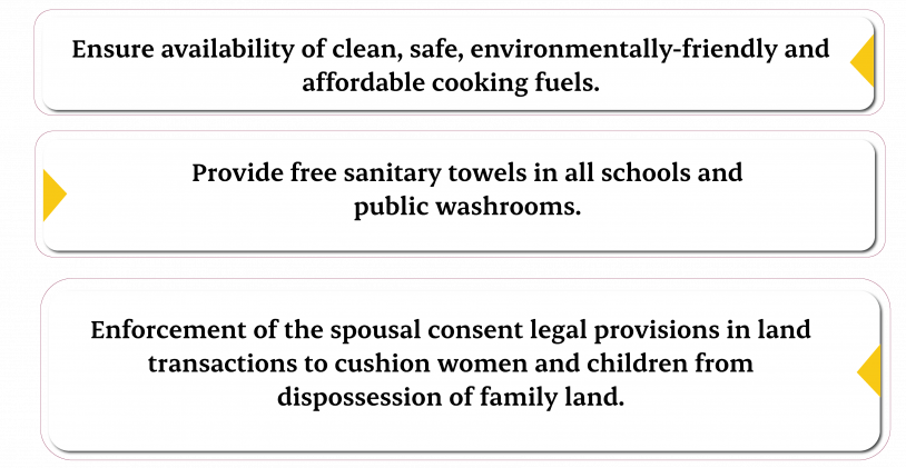 Reading through women-centered pledges in the various manifestos, one notices that they all seek to correct past and current injustices faced by women, and improve women’s quality of life.