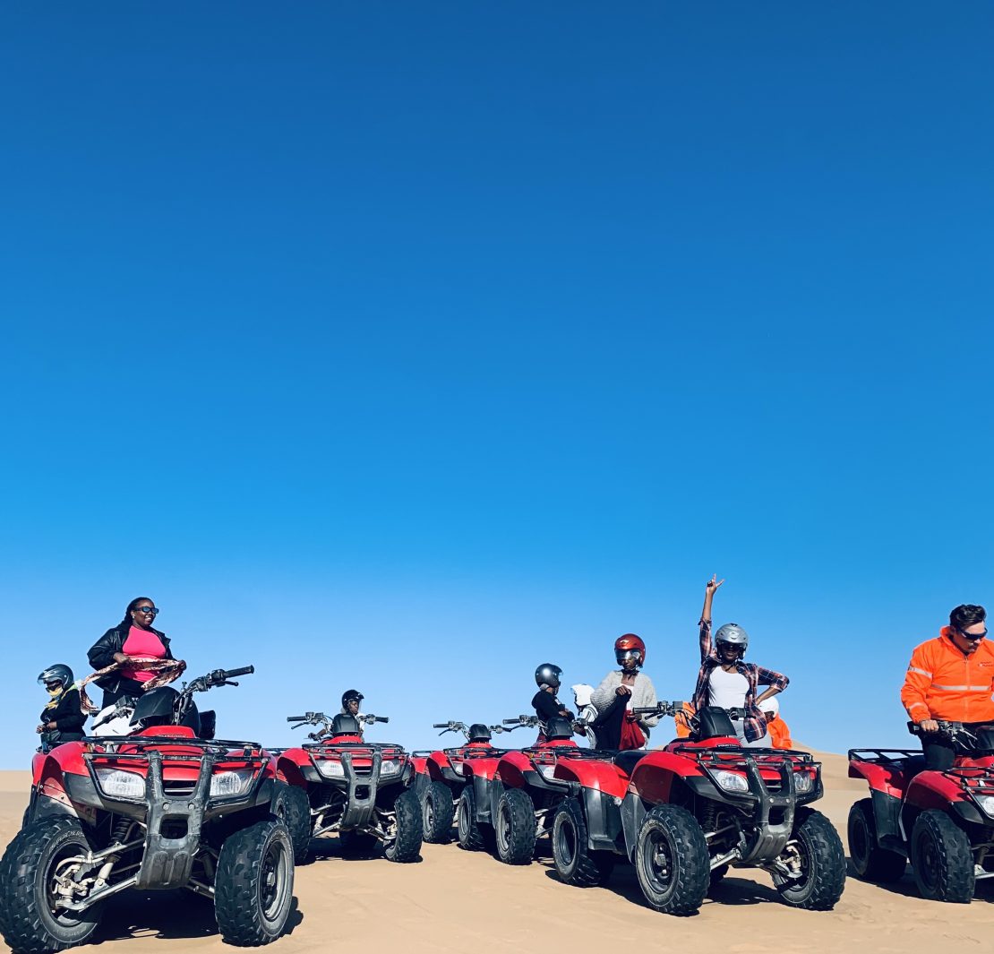 Day six was a more relaxed morning. With two girlfriends I’d made during the trip, I indulged in the simple things Swakop had to offer: a reptile museum with a few skin-crawling snakes, and an aquarium where different marine life species swam around each other with ease. The quad bike experience in the late afternoon did not disappoint – nor did the pitstop that was part of the ‘Desert Explorers’ experience, where we enjoyed a buffet of oysters and some champagne. One of our quad guides even announced he was more interested in getting our phone contacts than a tip after the bubbly had bolstered his confidence. (Cheers to a moment of soft life!)