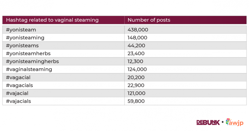 Debunk examined the Instagram pages of two Kenyan spas’ and discovered almost 100 posts collectively promoting the practice and making unsubstantiated claims about the benefits of vaginal steaming including restorative and healing of all types of ailments that women face.