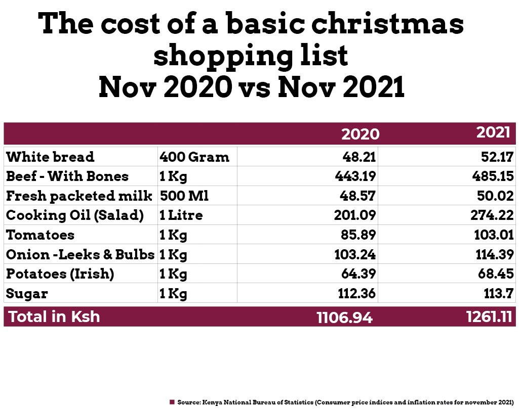 The festive season is always a stir-up of activity, over-the-top Christmas decorations, upcountry travels, lots of foods, and Boney M on repeat, the ultimate Kenyan Christmas tradition. But as data shows, price increases seem to be a steady part of the tradition too.